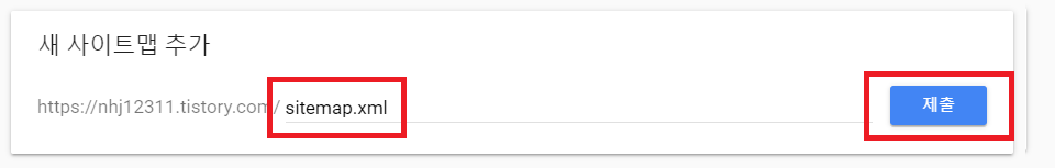 세번째. 주소에 "sitemap.xml" 을 입력하고, '제출'을 클릭합니다.