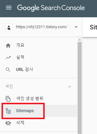 두번째로 좌측 상단에 Sitemaps 를 선택합니다.