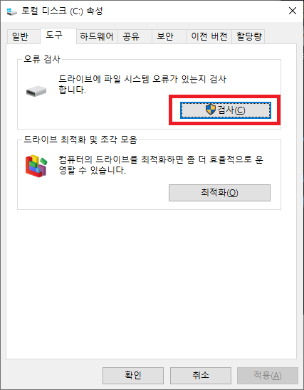 2. 드라이브 파일 시스템 오류 검사