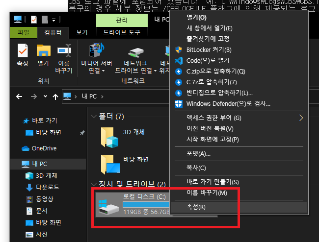 파일 탐색기를 열고 마우스 우클릭해서 '속성'을 선택해줍시다.