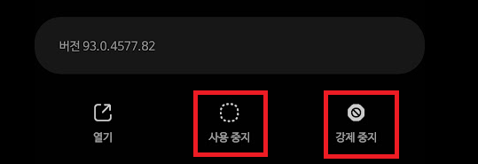 구글 플레이 스토어에서 Android 시스템 Webview 검색 후 '제거' 하면 해결 되는 경우가 있습니다. 카카오, 네이버, 네이버 블로그, 구글, 삼성 멤버스 등에서 문제가 발생한다고 합니다.