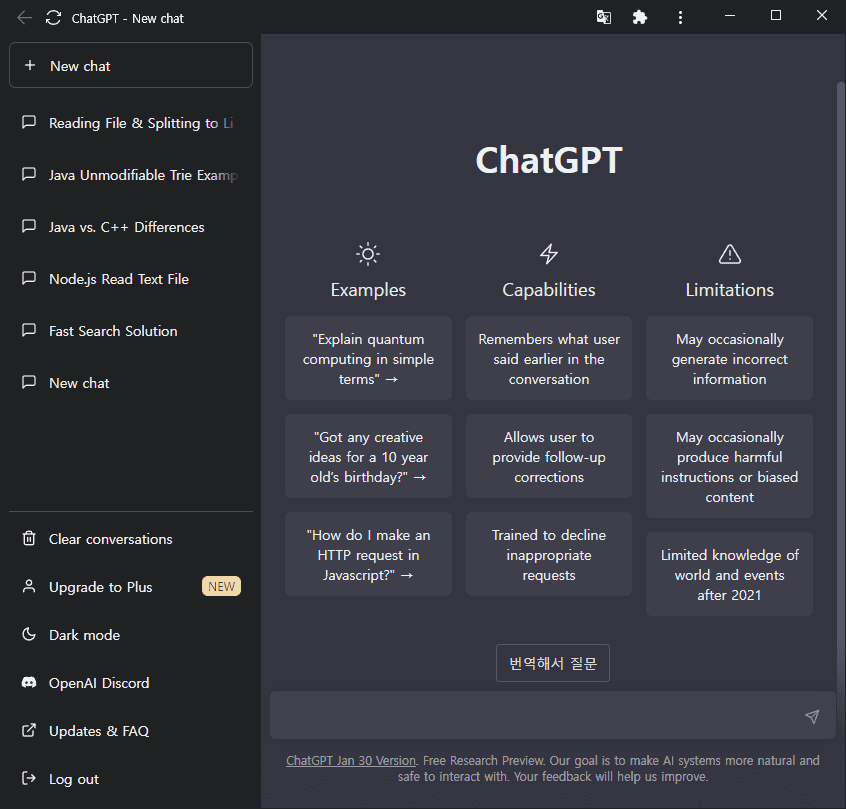 본인의 ChatGPT 작업방식과 습관에 따라 적절히 선택해주시면 될 것 같습니다. 저는 '창으로 열기'를 선택했습니다. 브라우저를 사용할 때 탭을 무수히 많이 사용하는데 별도로 분리되는게 아주 좋더라고요.